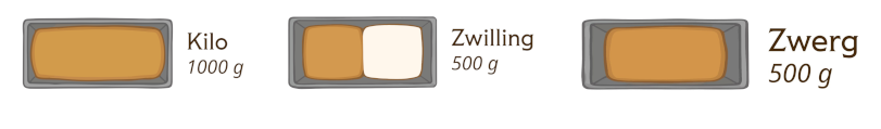 Die meisten unserer Biobrote bieten wir in 3 unterschiedlichen Größen an. Ausgenommen hiervon sind nur die freigeschobenenen runden Brote. Du kannst unser BioBrot als „Kilobrot“ als Zwerg oder als Zwilling erhalten.